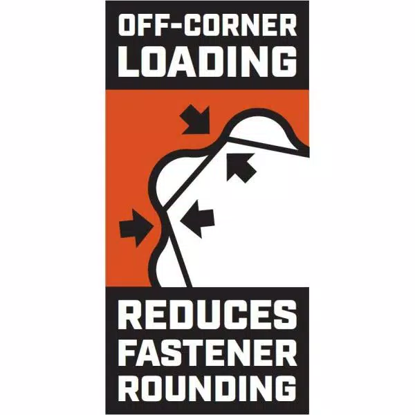 - 6-point sockets with off-corner loading technology reduces fastener rounding
