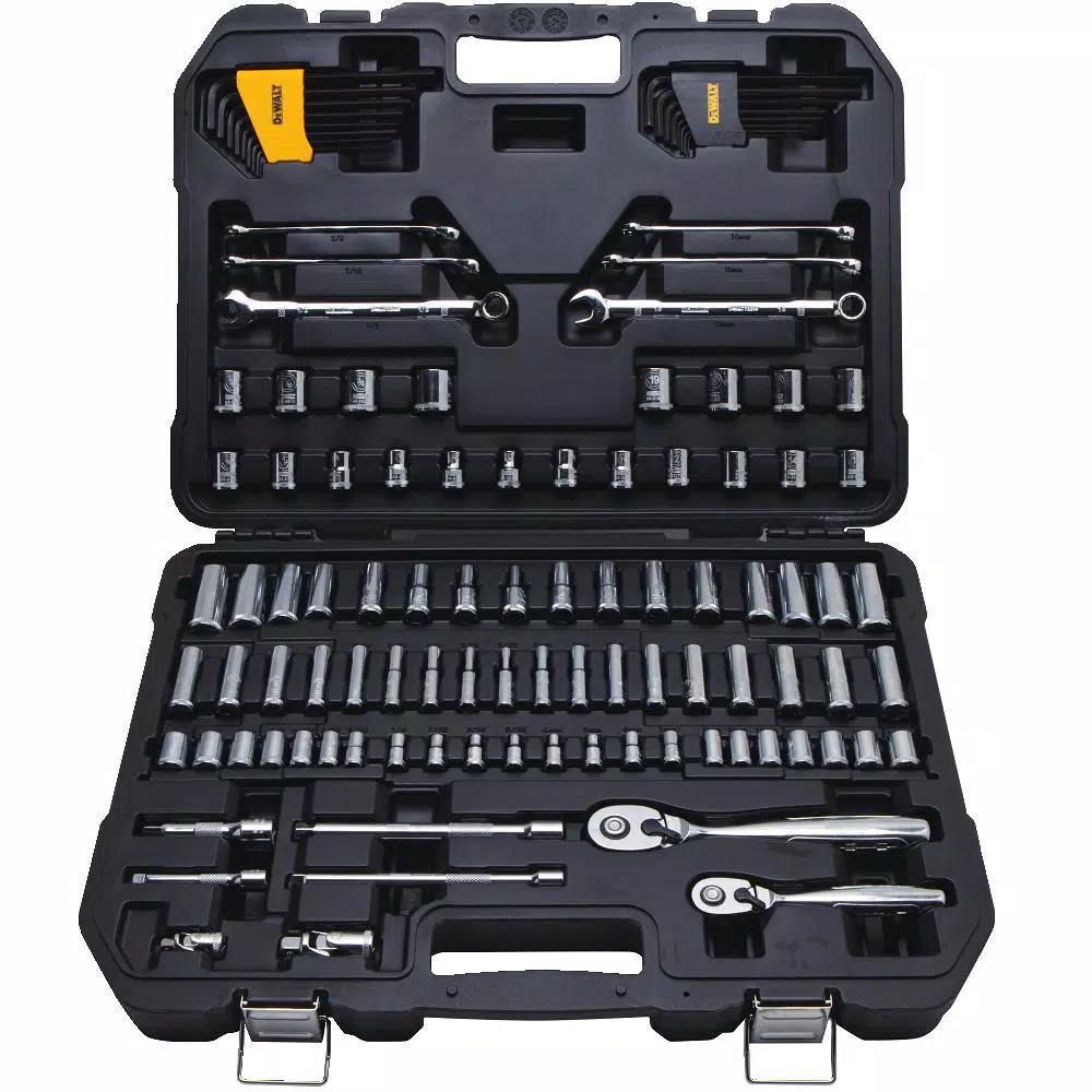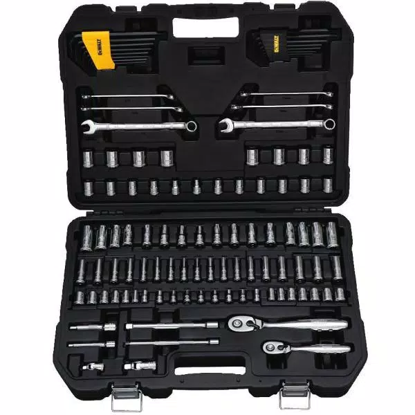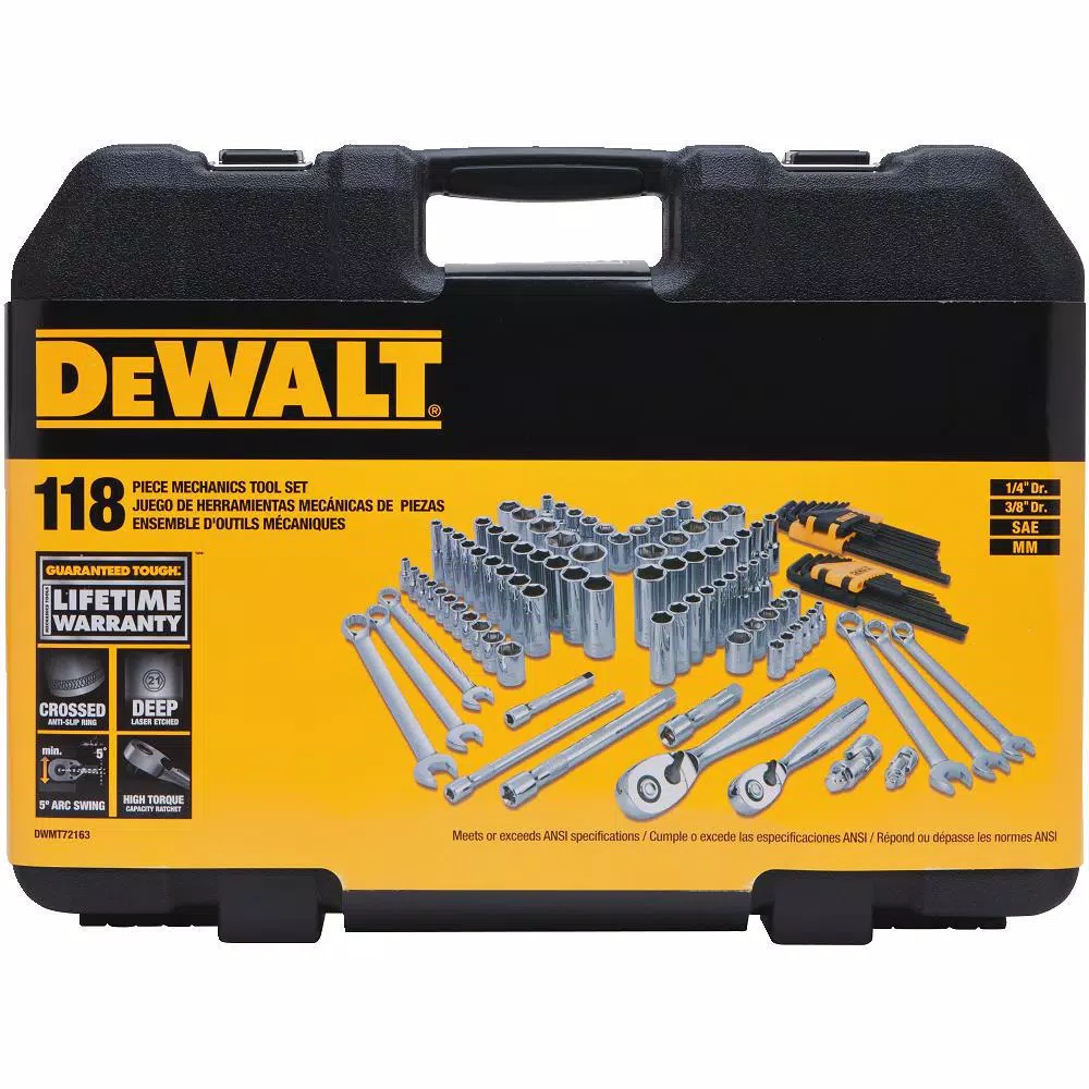 This DEWALT 118-Piece Mechanics Tool Set equips you with everything you will need for the job. This set is ideal for the professional on the go who wants to get the job done right. The DEWALT Guaranteed Tough philosophy was implemented in designing this set, allowing you to easily identify your sockets with the laser etched markings. The durable molded case allows for easy storage and tool protection.