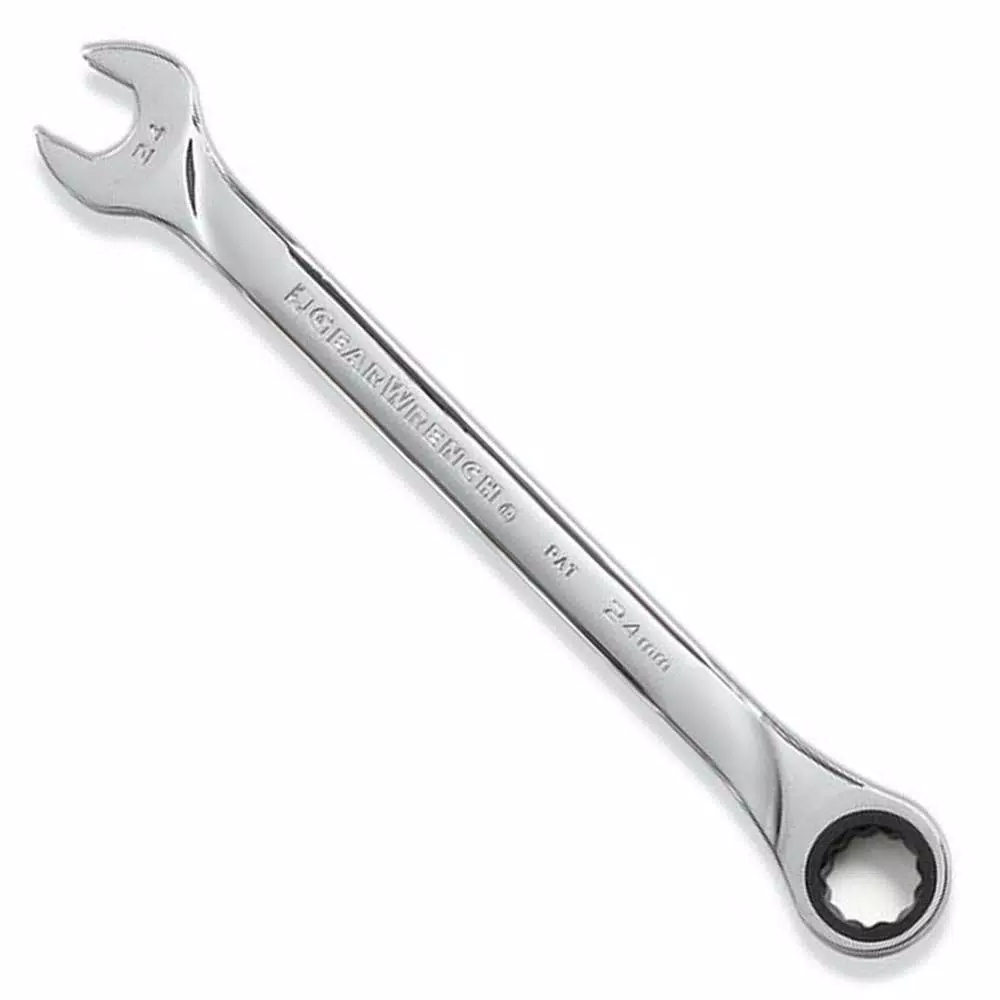 The GearWrench 12-Piece Metric XL Combination Ratcheting Wrench Set features popular wrench sizes with a full polish chrome finish for durability. The wrenches feature a reversing lever to quickly change the direction of the wrench. The box end utilizes Surface Drive technology which provides off-corner loading for better grip and reduced fastener rounding.