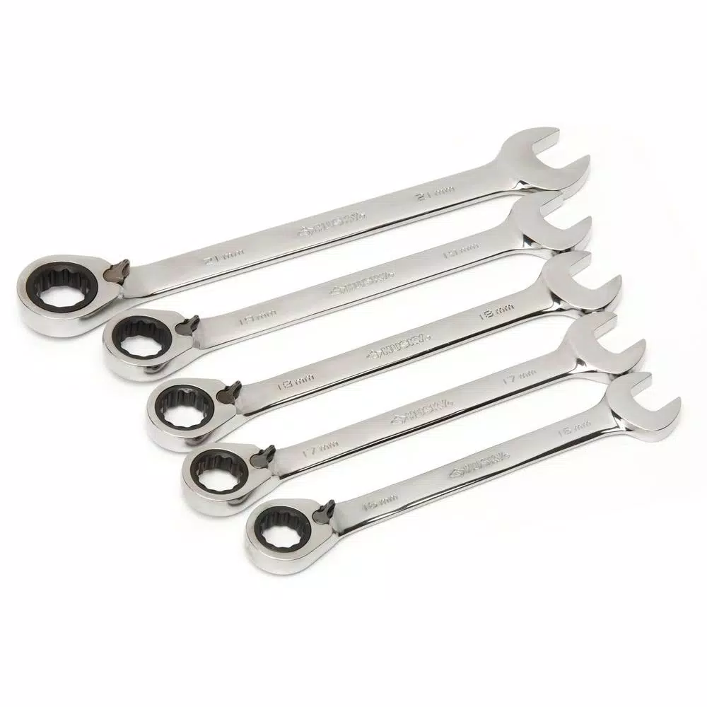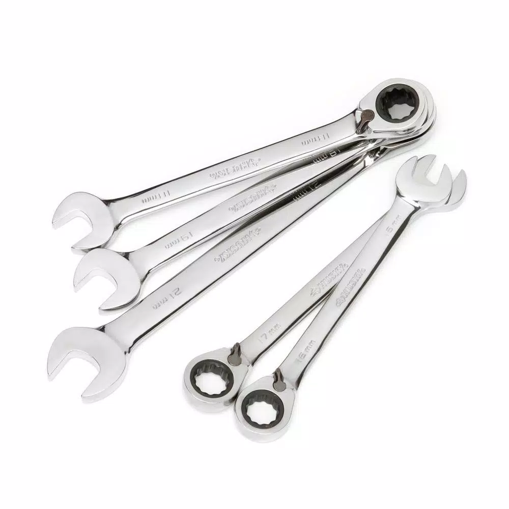- Large Metric reversible ratcheting wrench set, 5-piece: 16, 17, 18, 19, 21 mm