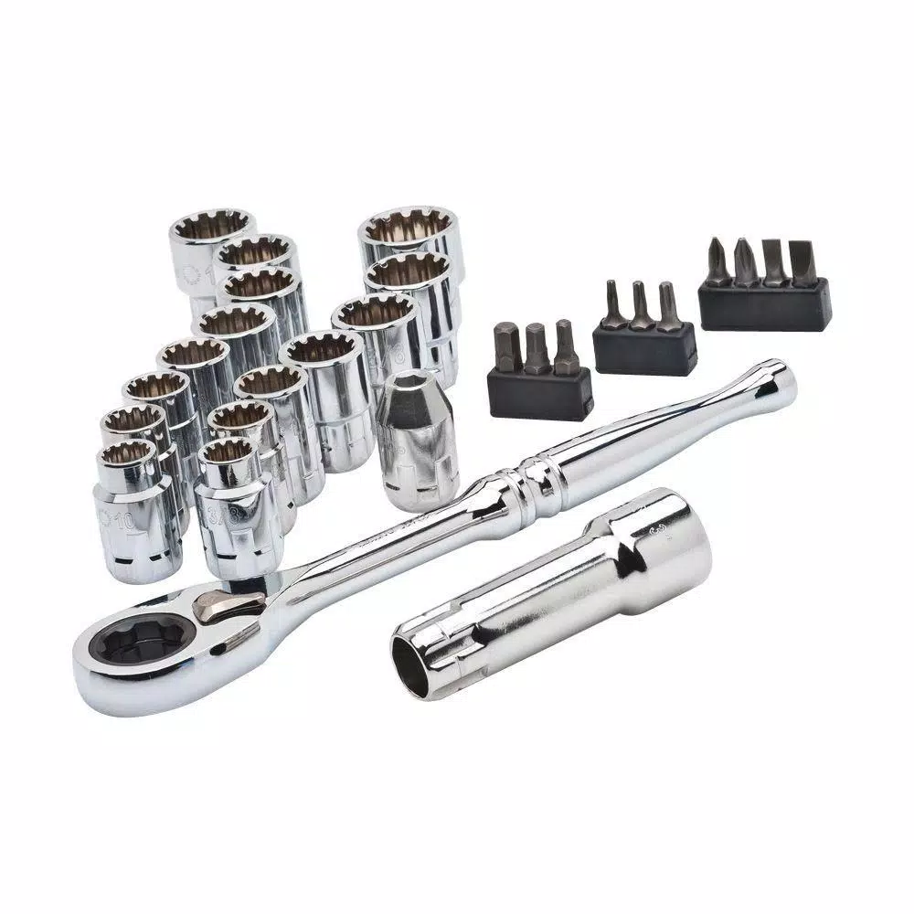 - Set includes one 3/8 in. drive ratchet, 14-standard length 1/4 in. drive 6-point sockets, 10 deep 1/4 in. drive 6-point sockets, 15 standard length 3/8 in. drive 6-point sockets and 25-other accessory and drive tools