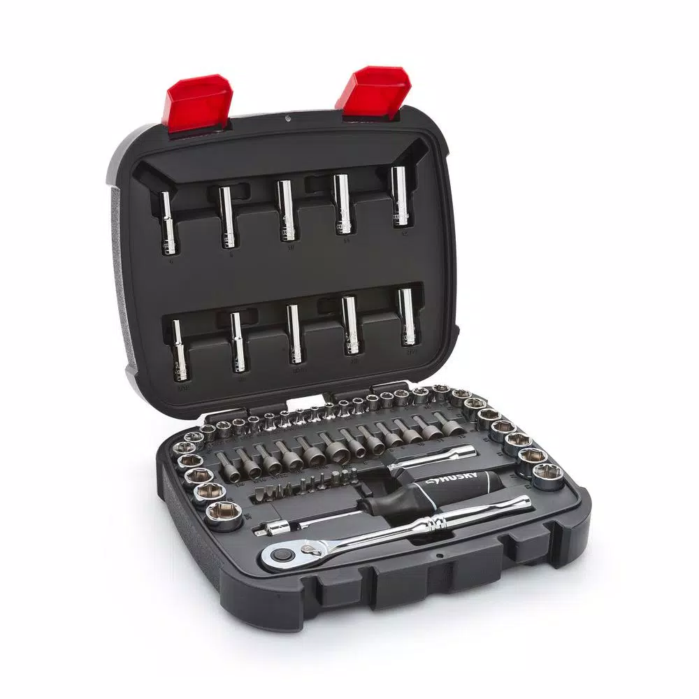 The Husky 65-Piece 1/4 in. and 3/8 in. Drive Mechanics Tool Set is a great starter kit for the home DIYer and mechanic. The 39 different standard and deep sockets allow you to tackle a range of general fastening or repair projects, a must-have for your home workshop. The innovative pass-through design of the Husky 28-Piece 3/8 in. Drive Pass-Through Socket Wrench Set allows this set to tackle jobs that standard socket sets canβt. The hollow sockets and ratchet heads enable threaded rod and bolts to pass completely through the tool for unbeatable access, virtually eliminating the need for deep sockets. This set is a must-have for your home workshop and comes backed by Huskyβs lifetime warranty for peace of mind.