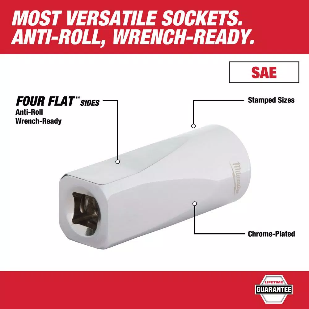 The Milwaukee SAE 26-piece 1/4 in. drive ratchet and socket set was designed from the ground up to offer better access in tight spaces and maximum tool strength. The 90-tooth ratchet tool offers 4Β° of arc swing and a slim profile design, allowing work in tighter spaces. Innovative socket design has 4 parallel flats, which deter rolling and are wrench-compatible. Optimized socket geometry helps reduce bolt rounding and stripping. Socket sizes are stamped into the flats for improved easy-to-read visibility. the ratchet and socket kit comes with a removable inner tray, designed to be stored long-term in a steel storage chest. It also comes with a durable carrying case for ultimate portability. The set comes with a Mechanics Hand Tools Lifetime Guarantee. The Milwaukee metric 28-piece 1/4 in. drive ratchet and socket set offers better access in tight spaces and maximum tool strength. Set of one 48-22-9404 and one 48-22-9504.