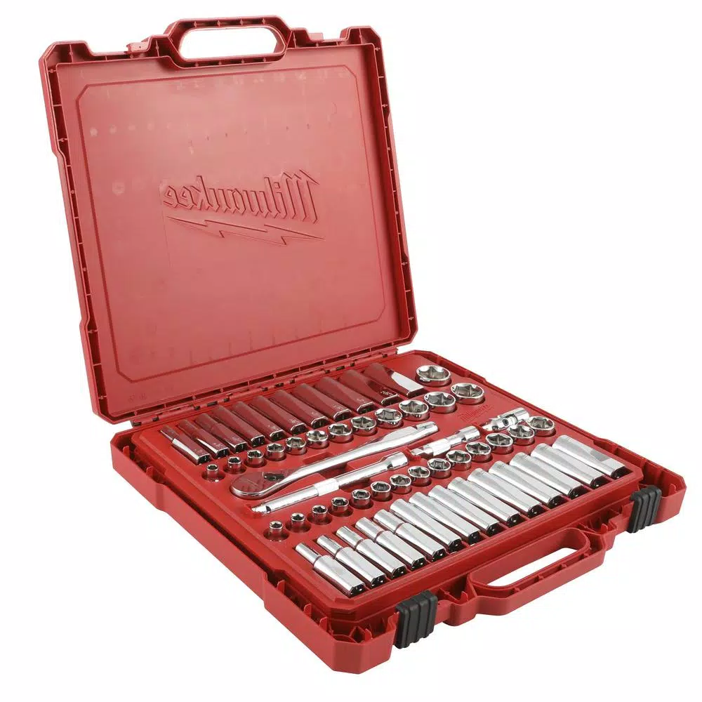 - Includes: standard sockets: 1/4 in., 5/16 in., 3/8 in., 7/16 in., 1/2 in., 9/16 in., 5/8 in., 11/16 in., 3/4 in., 13/16 in., 7/8 in., 15/16 in., 1 in., 6 mm, 7 mm, 8 mm, 9 mm, 10 mm, 11 mm, 12 mm, 13 mm, 14 mm, 15 mm, 16 mm, 17 mm, 18 mm, 19 mm deep well sockets: 1/4 in., 5/16 in., 3/8 in., 7/16 in., 1/2 in., 9/16 in., 5/8 in., 11/16 in., 3/4 in., 13/16 in., 7/8 in., 6 mm, 7 mm, 8 mm, 9 mm, 10 mm, 11 mm, 12 mm, 13 mm, 14 mm, 15 mm, 16 mm, 17 mm, 18 mm, 19 mm accessories: 3 in. extension, 6 in. extension, universal swivel 90-tooth ratchet