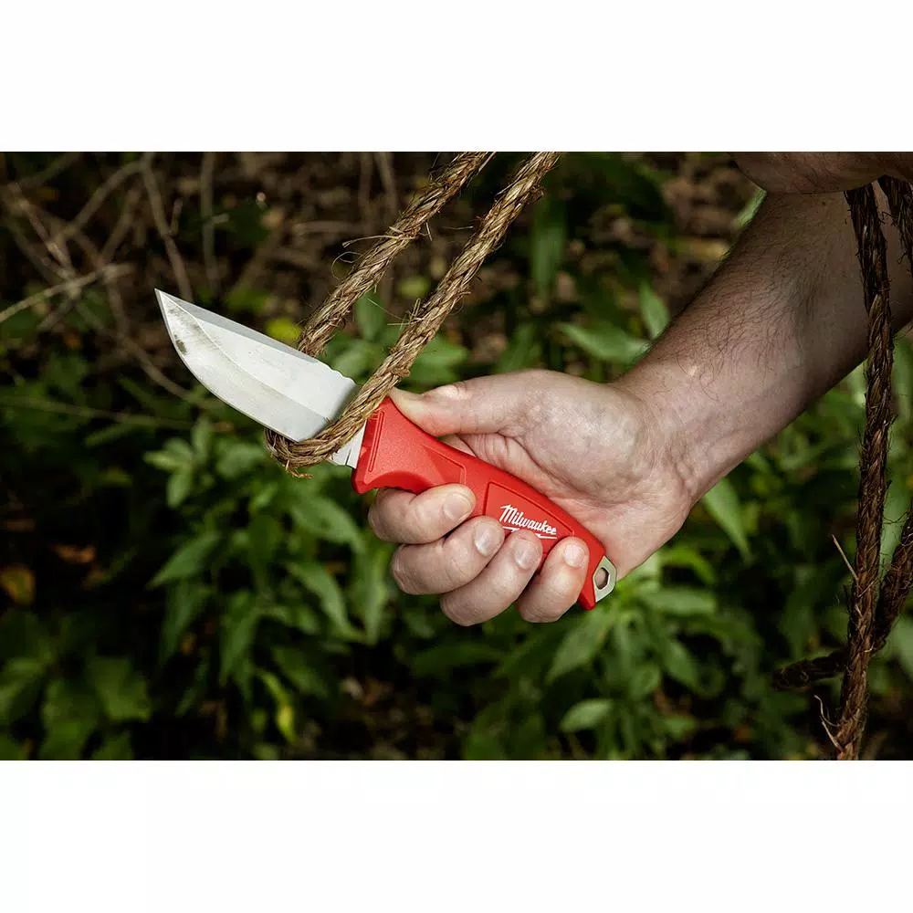 The Milwaukee 4 in. Fixed Blade Knife can tackle most any cutting task. The stainless steel blade stays sharper, longer. A full metal tang provides added durability for tough cuts. The molded sheath makes it easy to carry and store.