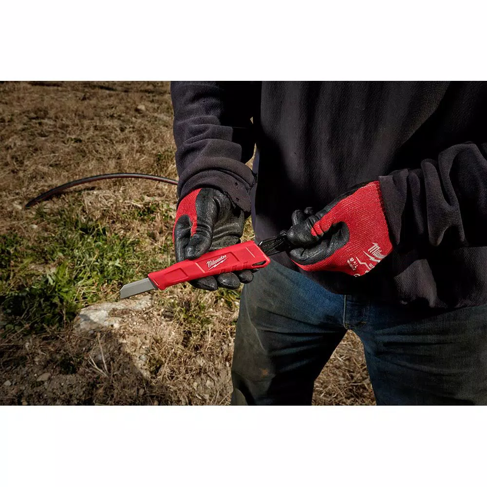 The Milwaukee Lineman’s Underground Knife is ideal for stripping multi-layer wire and cable. The stainless steel utility blade is optimized to stay sharper longer and is ideal for stripping wire and cable. The ergonomic handle is designed for all-day use as well as to easily fit inside a tool bag or pouch. A durable blade cover allows the wire stripping knife to be easily stored. While the lineman knife is in use, the case can be stored in the handle to prevent loss.