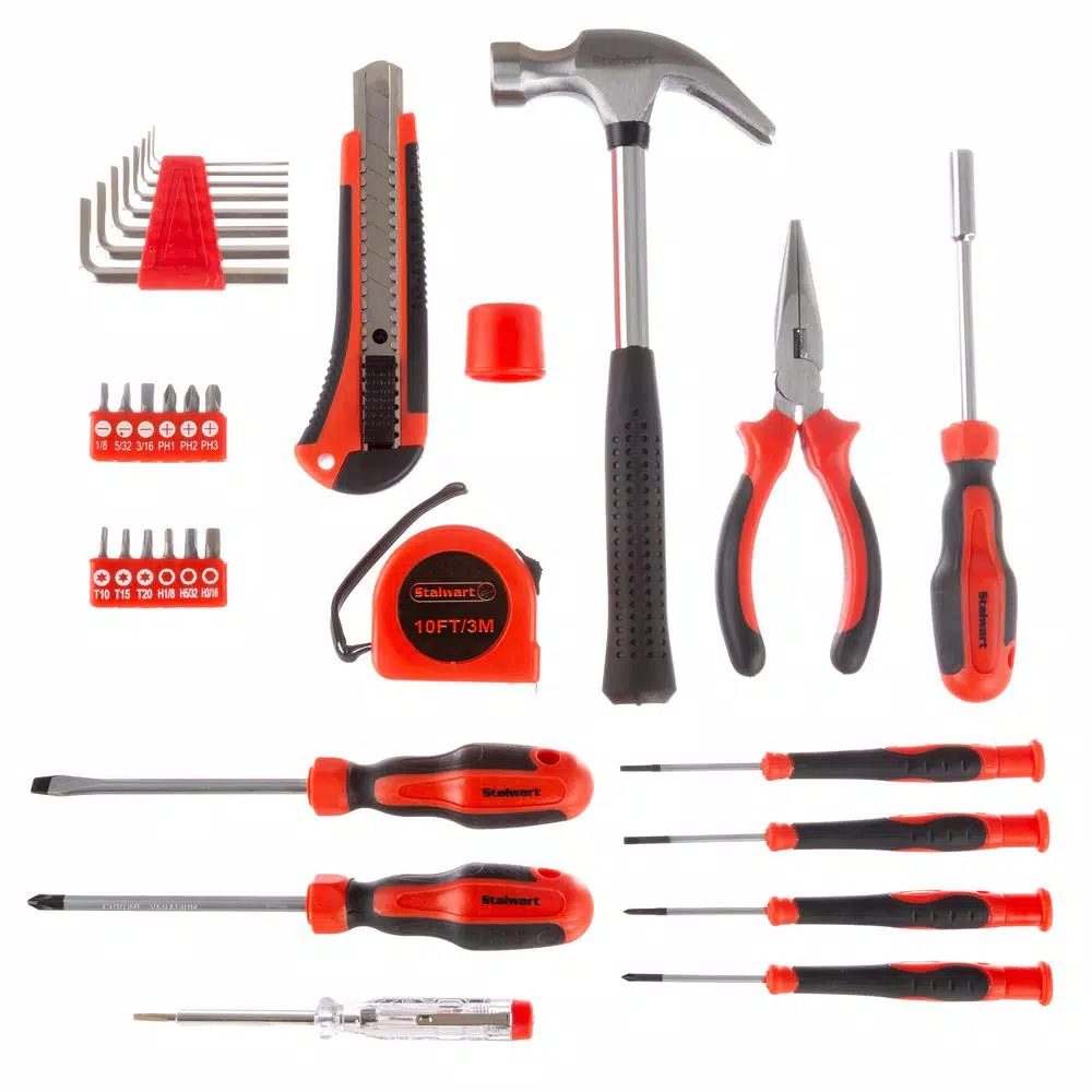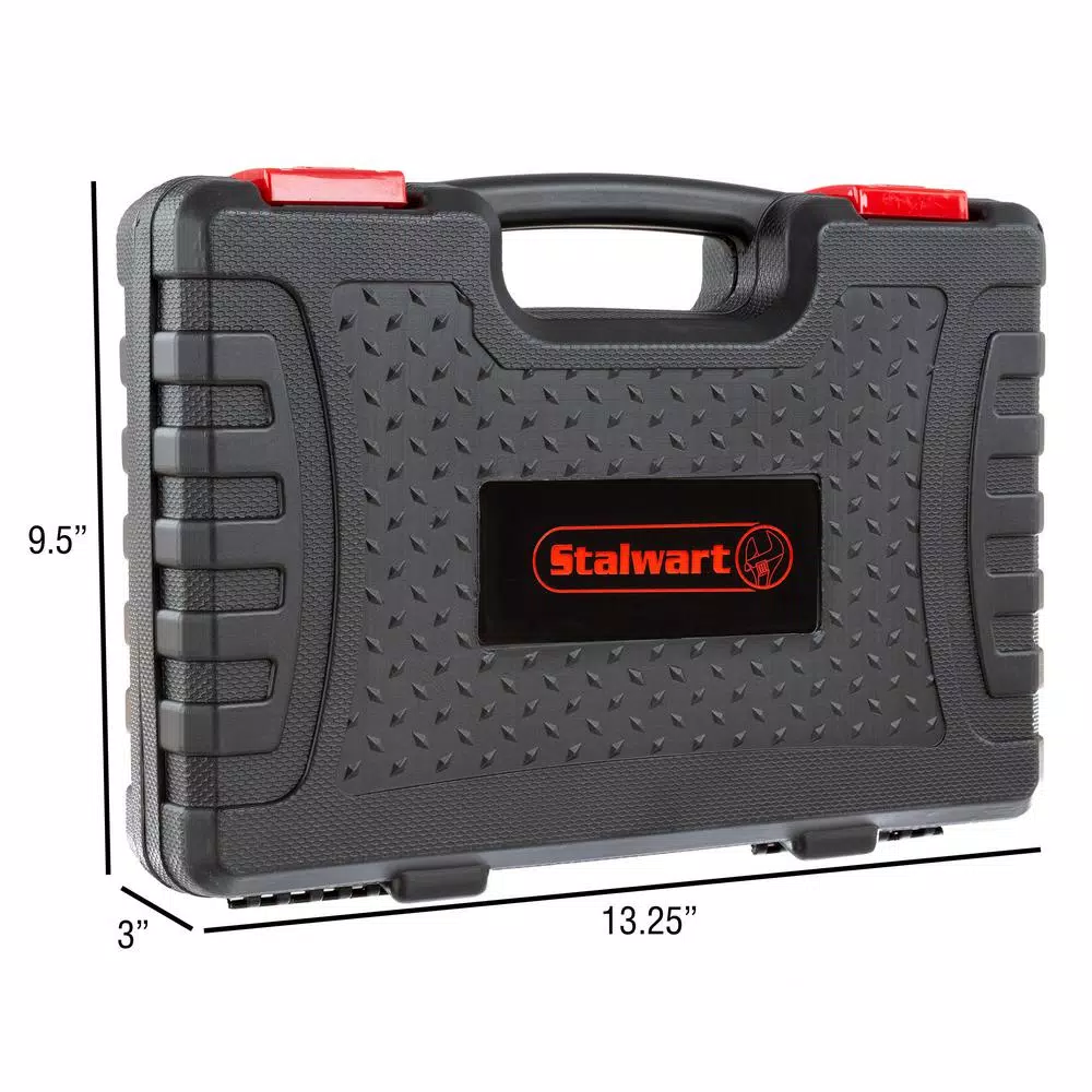 Take on any home improvement or hobby project with the 23-Piece Tool Set by Stalwart. The set is ideal for basic home repairs, assembling pre-fabricated furniture and DIY projects in apartments and dorms and for first-time homeowners. The hard plastic carrying case has ample room for all the tools and accessories included in this set for easy storage and is durable for worry-free travel. Each tool is made of heat-treated steel for strength and durability to ensure that this set will stand up to daily use and last for years to come.