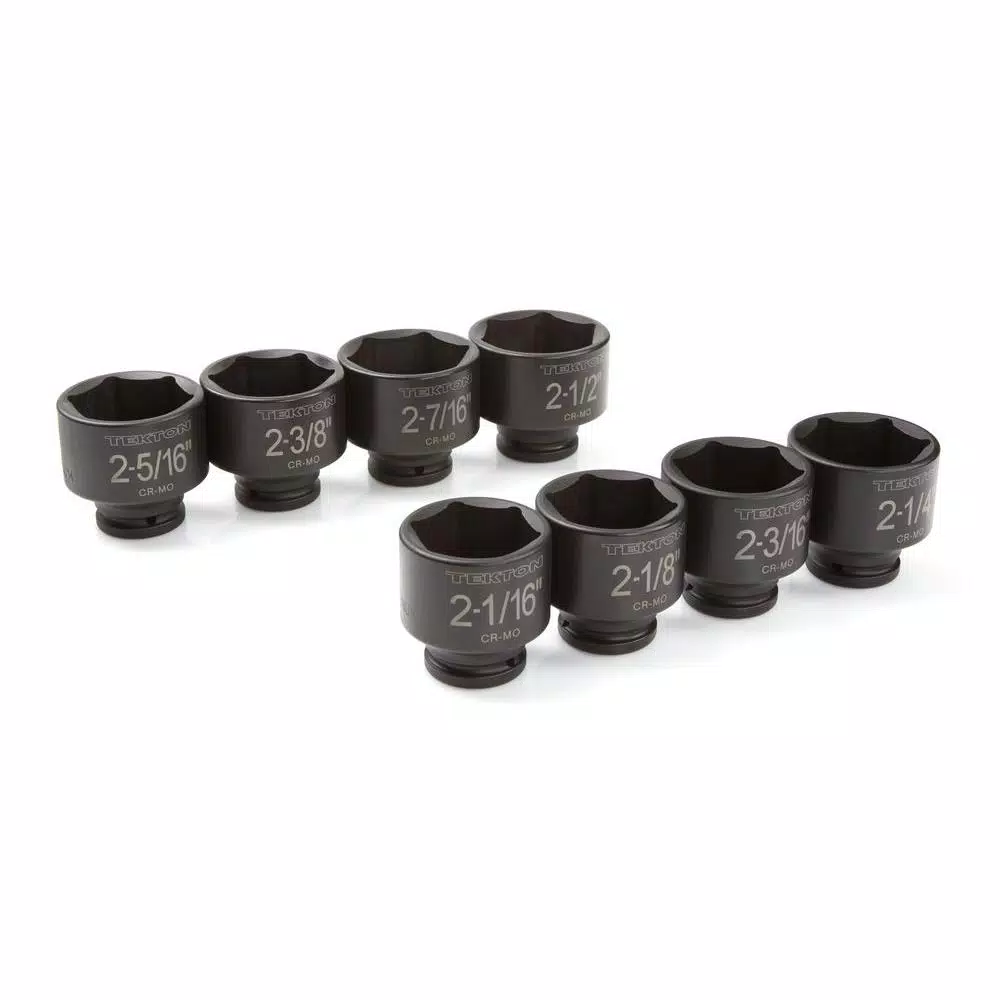 - Set includes: 8-piece 3/4 in. drive sockets (in.): 2-1/16, 2-1/8, 2-3/16, 2-1/4, 2-5/16, 2-3/8, 2-7/16, 2-1/2 in.