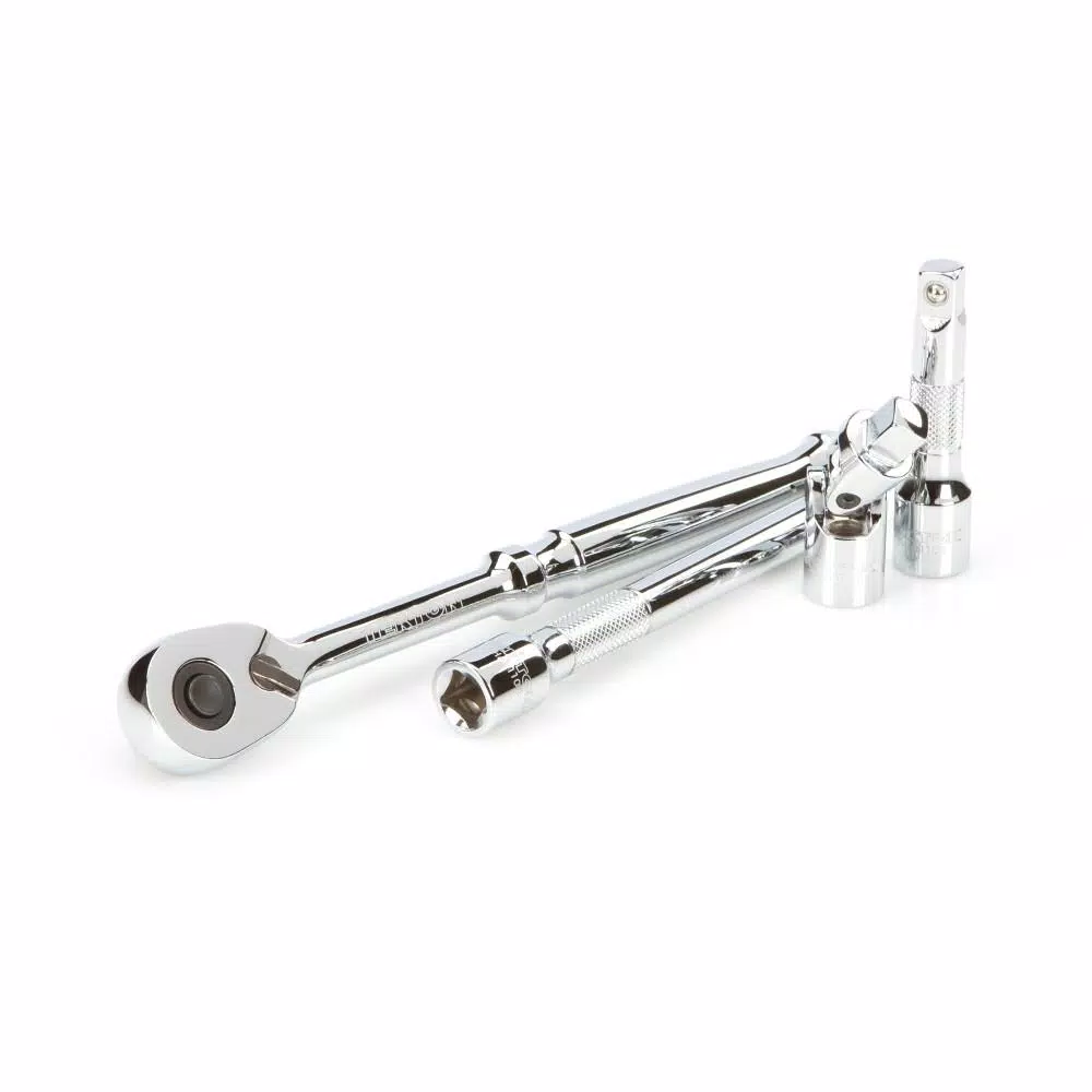 - 1-piece, 3/8 in. drive 90-tooth quick-release ratchet: 8 in.