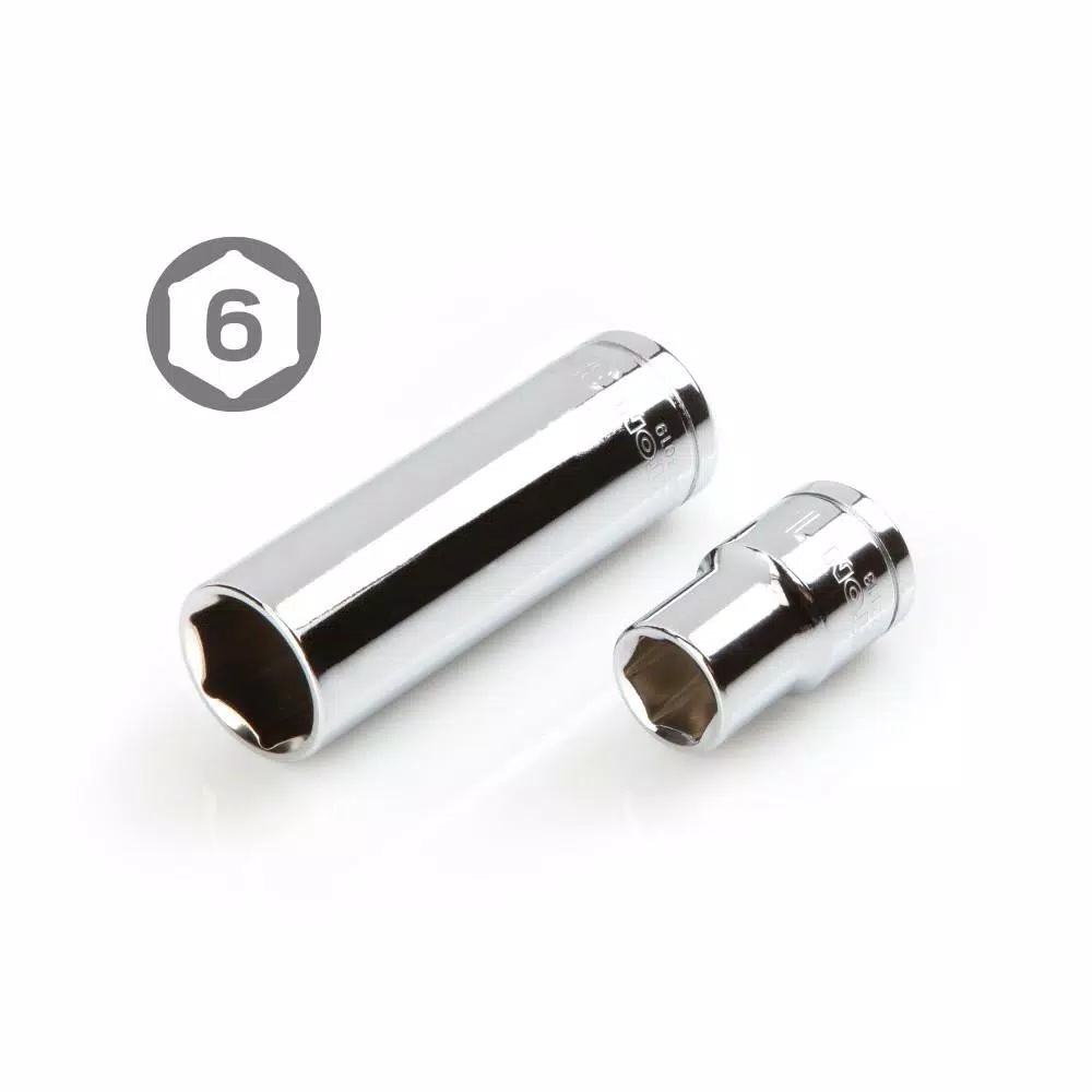 - 6-point sockets apply force to flat sides of fasteners and not the corners, preventing round-off